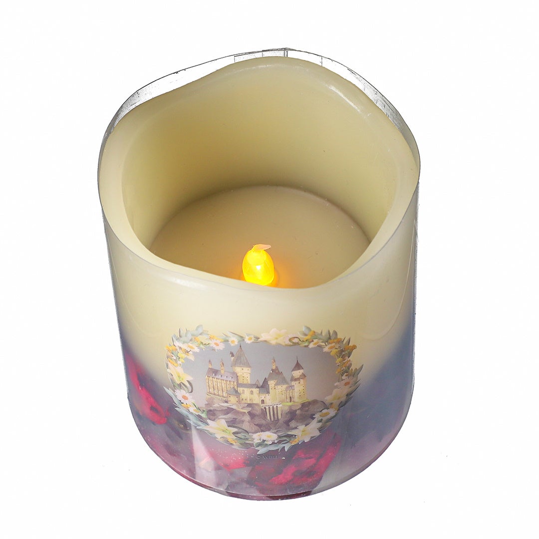 ホグワーツ城がデザインされたLEDキャンドルライトです。キャンドル部分は本物のワックスで作られ、ミニバラのドライフラワーを閉じ込めています。LEDライトのため、屋外やグランピングなどのシーンでも使用可能です。