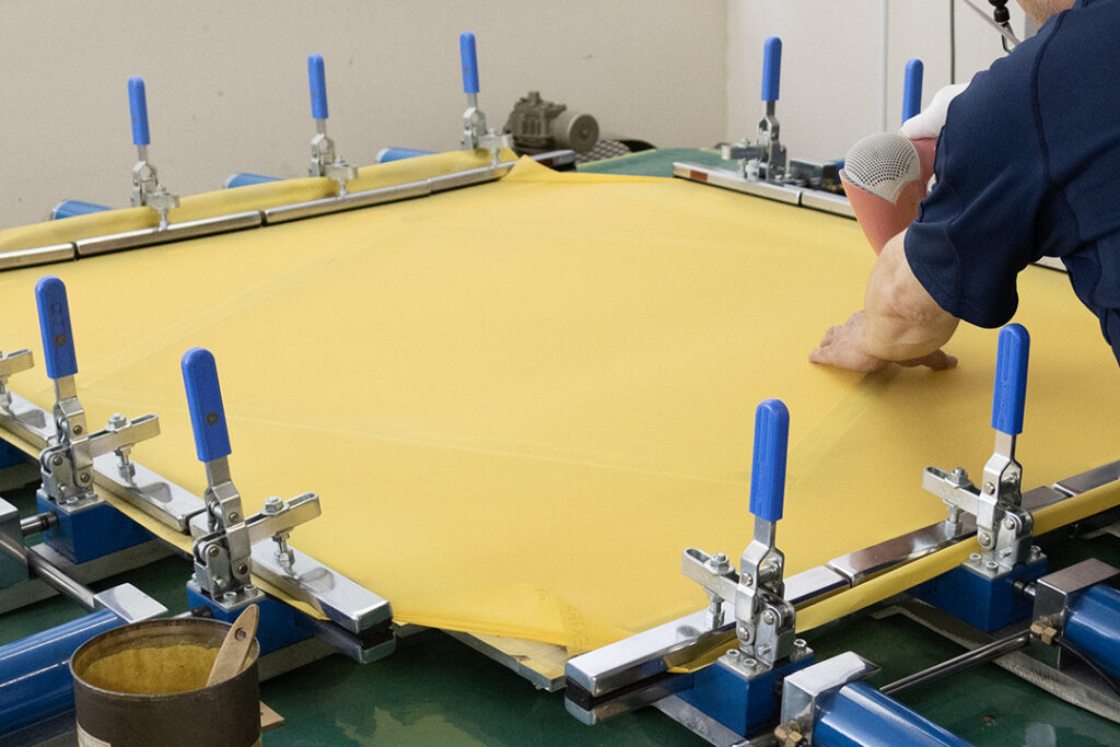 メッシュ張り、露光、現像など、スクリーン製版のすべての工程を一つの工場で行っております。